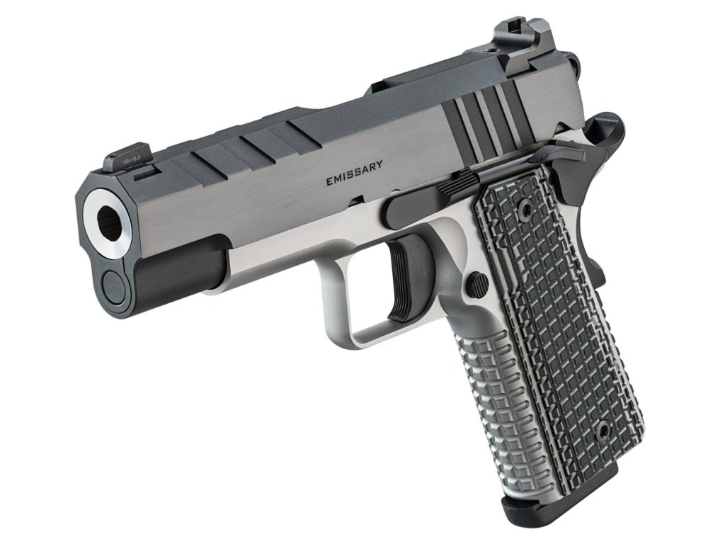 ✅ Model Emissary 1911 v ráži 9 mm Luger je kompaktnější verzí téhož klasického rámu. S 4,25" hlavní, kvalitním zpracováním, hybridní konstrukcí (nerezový rám + modrý karbonový závěr) a moderními prvky (Tri‑Top zdrsnění, tritiová mířidla) je připravena pro obranné použití i sport.