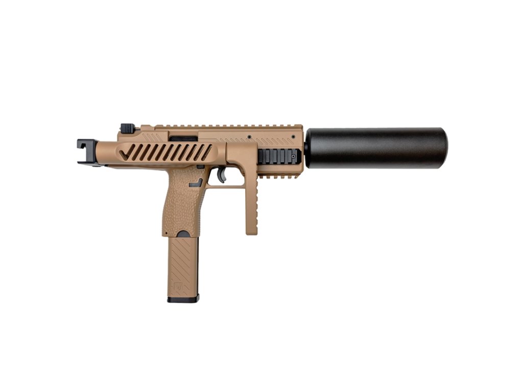 Plynový samopal VORSK VMP-1X GBB s tlumičem / Green Gas – TAN