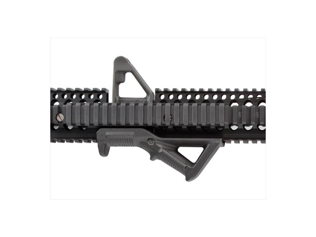 Magpul AFG (Angled Fore Grip) zajišťuje přirozenější pozici ruky blíže ose hlavně, čímž snižuje zvedání ústí při výstřelu, zlepšuje stabilitu zbraně a umožňuje rychlejší následné výstřely.