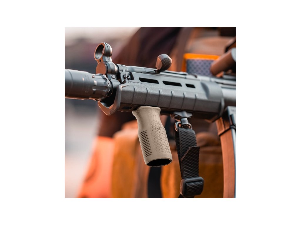 Díky Magpul TSP textuře (Trapezoidal Surface Projections) poskytuje jistý úchop v dešti, bahně i v rukavicích.