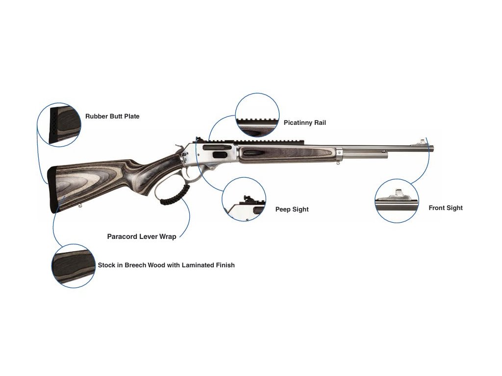 Zbraň má systém pákové opakovačky (lever action), který poskytuje plynulý a spolehlivý chod. Mířidla jsou řešena dioptrickým (peep) zadním mířidlem a pevně umístěným předním mířidlem. Horní část zbraně je vybavena Picatinny lištou, která umožňuje rychlou montáž optiky. Díky provedení v nerezové oceli je údržba zjednodušena a zbraň je vhodná pro použití v náročných terénních podmínkách.