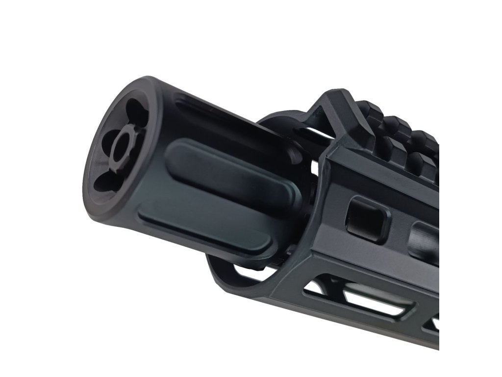 Model AR-15 Pro Series 6,75" BLK je postaven na billet těle z hliníku 7075-T6 s mimořádnou pevností a tuhostí. Hlaveň Rosco Manufacturing 6.75" / 171 mm s 1:8" vývrtem zaručuje vysokou přesnost a dlouhou životnost. Zbraň je osazena lineárním kompenzátorem Cobalt Linear Compensator, který účinně odvádí tlak dopředu a snižuje zpětný ráz i hluk při střelbě.