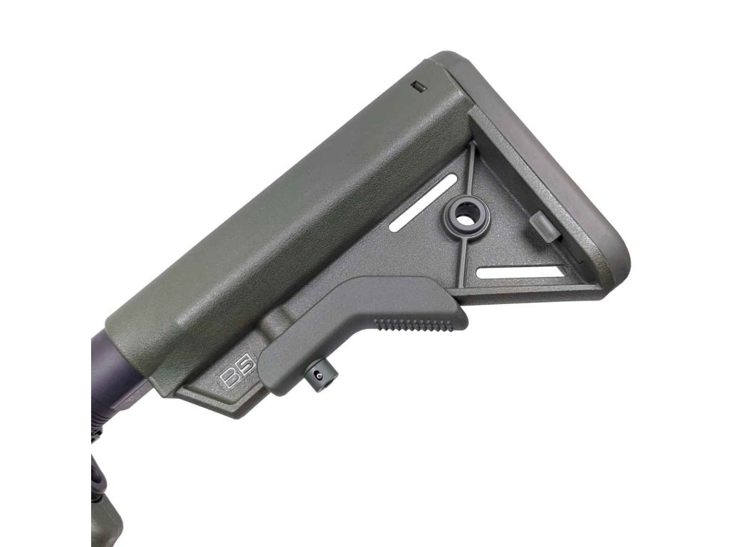 K přesné střelbě přispívá spoušť Geissele G2S s ostrým a krátkým resetem, zatímco napínací táhlo Radian Raptor LTumožňuje hladkou manipulaci. Ergonomická pažba B5 Systems Bravo a rukojeť Type 23 P-Grip zaručují perfektní úchop a kontrolu při střelbě. Díky nastavitelnému buffer systému Cobalt Kinetics Pro Buffer lze doladit zpětný ráz a cyklování závěru.