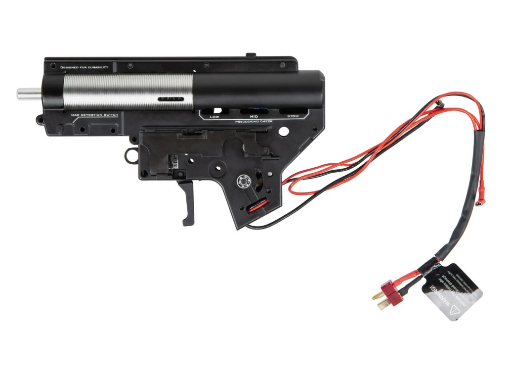 Uvnitř nalezneme CNC ocelová kola 16:1, kombinovaná ložiska J‑Cage 8 mm, zesílený píst se 14 zuby, CNC hlavy válce i pístu a trysku s těsněním. Hop-up MAGNUS™ TDC se systémem Flat-Hop a hlavní 6,02 mm zajišťují výbornou přesnost. HAL ETU nabízí programování přes spoušť, aktivní brzdu, binární režim, 5 úrovní citlivosti, 6 úrovní precockingu i režimy burst. Výstřely jsou rychlé, ostré a zbraň zvládá až 5000 výstřelů na jednu baterii. Rychlý přístup k motoru zajišťuje QD pažbička, konektor je T-Dean.
