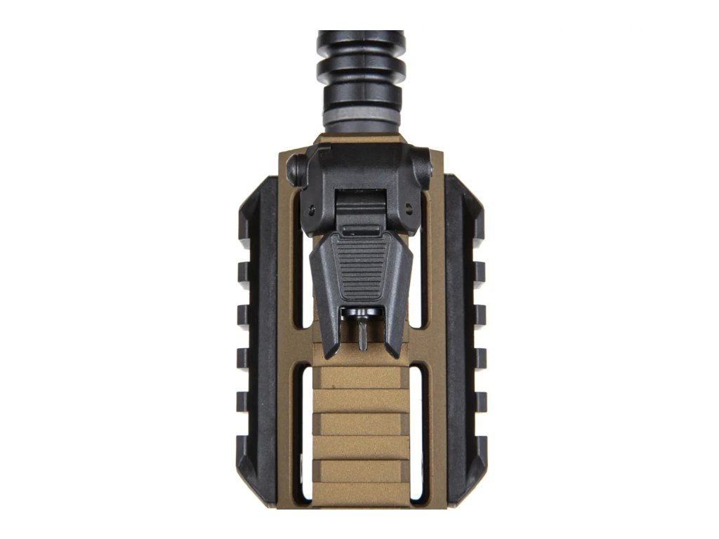 M4 CQB M-LOK (SA-P23 Prime™) v barvě Chaos Bronze je prémiová elektrická replika navržená pro maximální efektivitu, přesnost a spolehlivost. Tělo zbraně s matnou povrchovou úpravou Nano Coating odolává poškrábání a opotřebení. CNC M-LOK předpažbí umožňuje montáž příslušenství, zatímco pažba typu Crane poskytuje prostor pro různé baterie (Buffer Stick, Nunchuck, Crane). Nově navržená QD pažbička umožňuje okamžitý přístup k motoru. Kombinace prvotřídního zpracování, nejmodernějších komponentů a realistického vzhledu dělá z modelu Prime™ univerzální zbraň vhodnou pro CQB i DMR konfigurace.