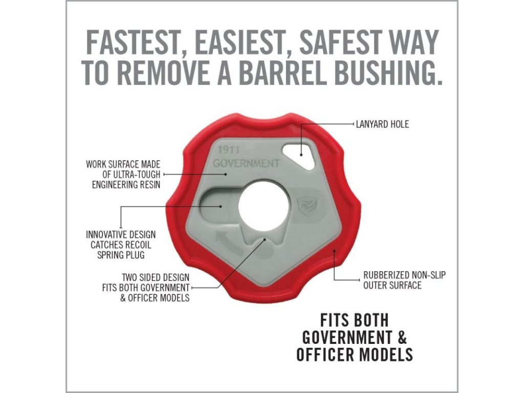 končeně! Chytré řešení otravné rozborky pistole 1911 je tady! Už žádné potíže, žádné vystřelení pružiny do neznáma, žádné hledání ztracených dílů po střelnici. Stačí zamáčknout a otočit - hotovo. Geniální design vybrání drží příslušné díly na místě a Vy tak máte život o něco lehčí. |