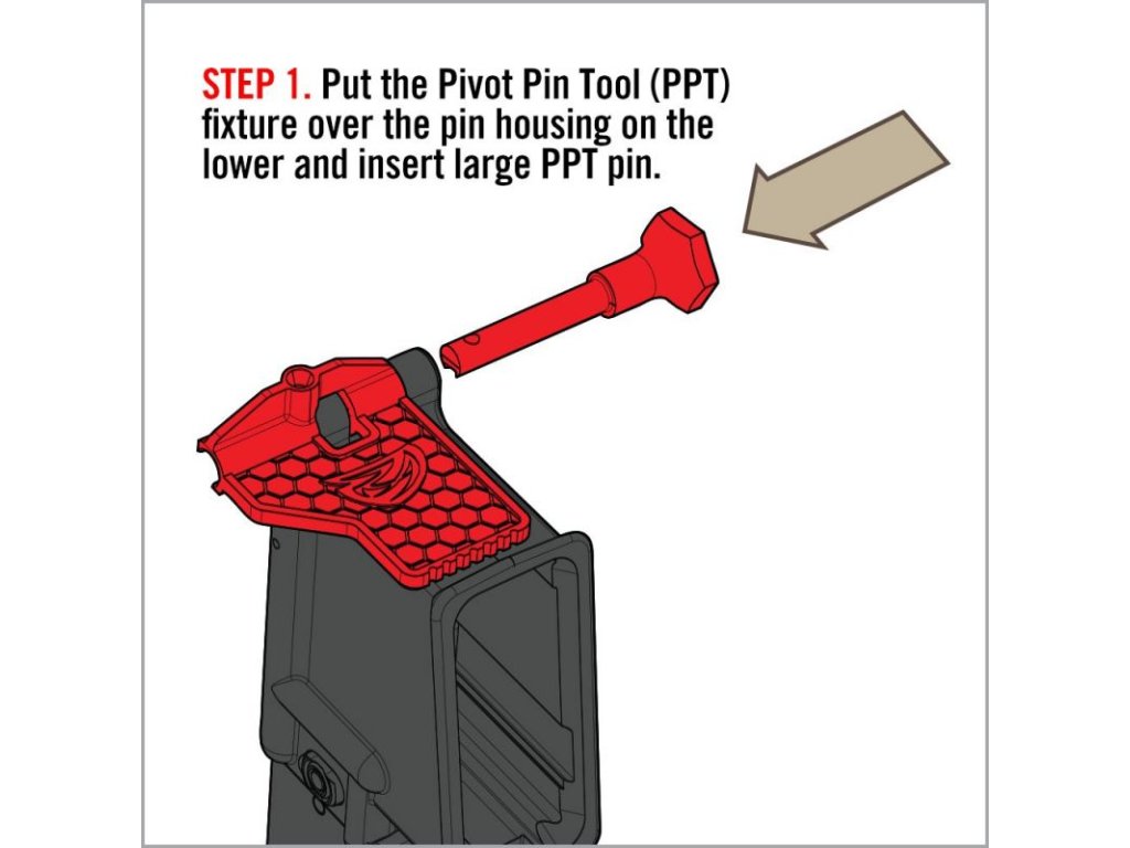Detailní popis pomůcky k instalaci pivot pin AR-15