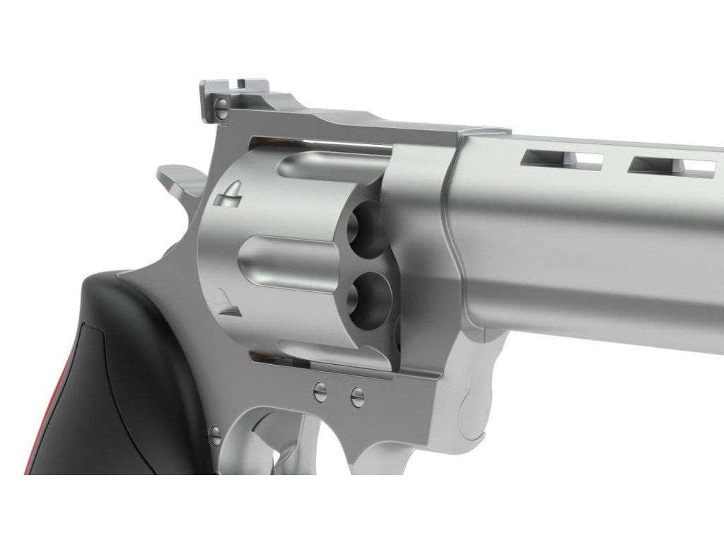 Revolver Taurus 444 Raging Bull je oblíbeným modelem pro svou kombinaci inovativního designu, spolehlivosti a výkonu. Jeho hlaveň o délce 6,5" (162 mm) je vybavena kompenzátorem, který efektivně snižuje zpětný ráz, což zajišťuje snadnější kontrolu při střelbě.