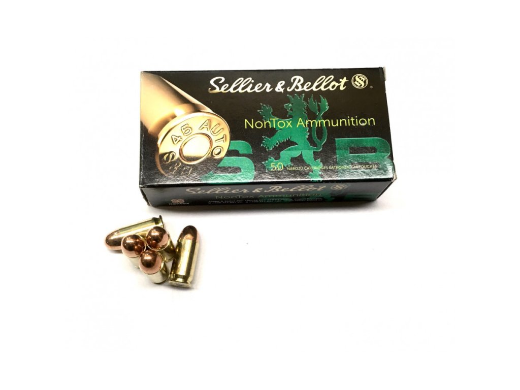 Revolverový náboj Sellier & Bellot 45 ACP NON TOX TFMJ 14,9 g / 230 gr, balení 50 ks