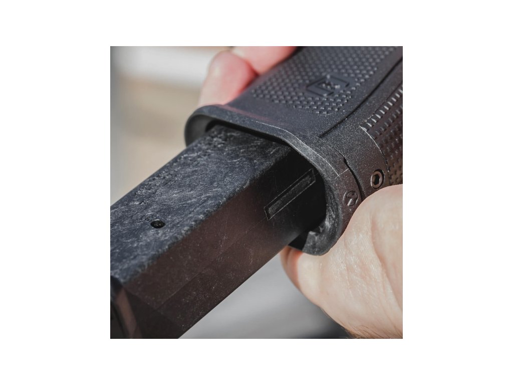 Díky přesnému dosednutí zlepšuje vkládání zásobníku pod stresem i v rukavicích. Tento model je kompatibilní s originálními zásobníky Glock a většinou aftermarket zásobníků. Instalace je jednoduchá a nevyžaduje trvalé úpravy zbraně.