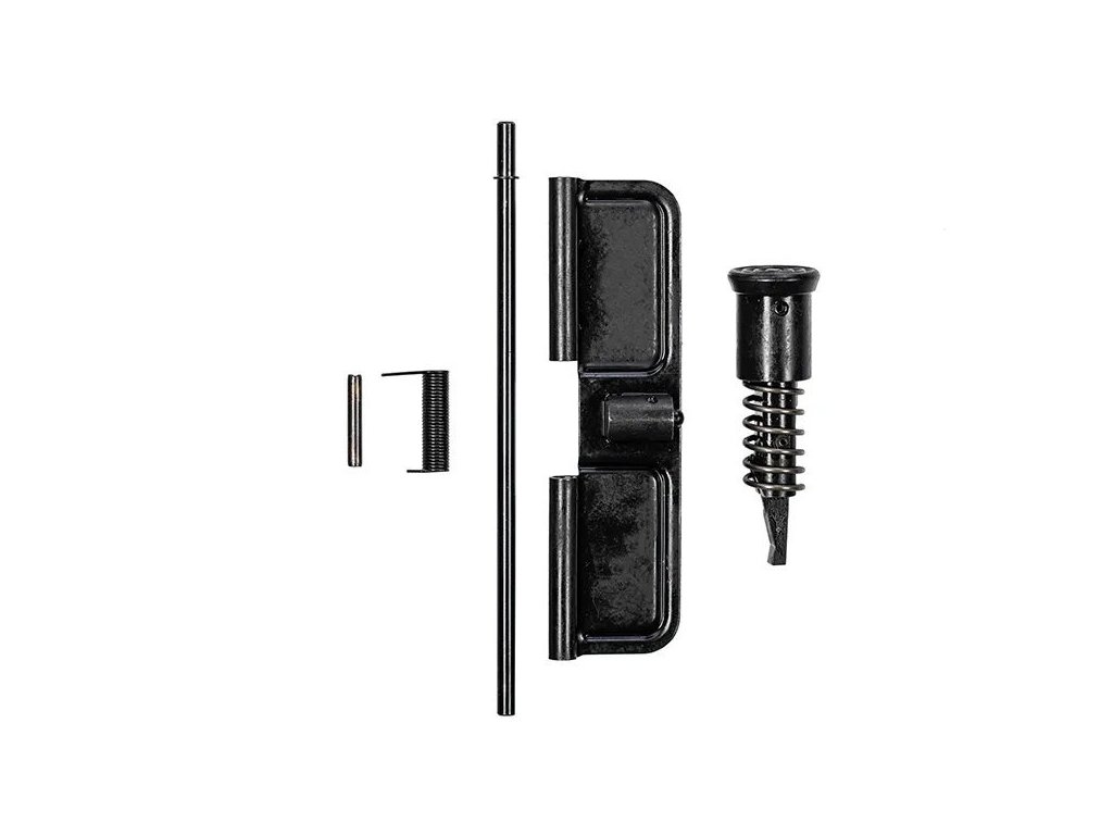 Kryt výhozího okénka a doraz závěru jsou vyrobeny z kvalitních ocelových a hliníkových slitin s černou povrchovou úpravou. Komponenty odpovídají mil-spec specifikacím, takže zaručují snadnou montáž bez nutnosti dodatečných úprav. Sada je určena pro standardní upper receivery typu AR-15/M4 a poskytuje všechny základní funkce pro správné vyhazování nábojnic i zachycení závěru v zadní poloze.