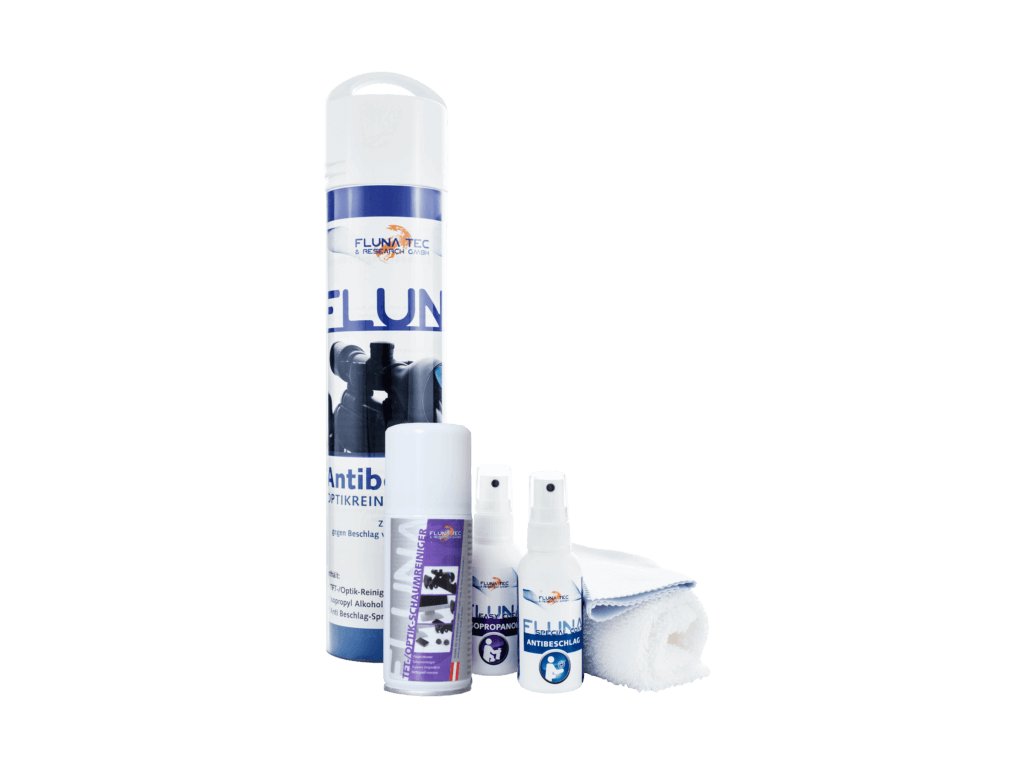 Fluna Anti Fog je nátěr na bázi rozpouštědel. Zabraňuje zamlžování skleněných povrchů kvůli teplotním rozdílům, zejména při myslivecké optice, jako jsou dalekohledy, puškohledy a zaměřovací dalekohledy či kolimátory. Fluna Anti Fog nepoškozuje speciální nátěry optiky a lze jej snadno aplikovat.