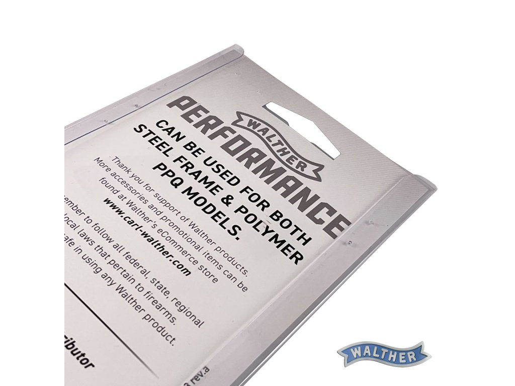 Každá pružina v setu je vyrobena pro odlišnou hodnotu odporu spouště, což umožňuje střelci volbu optimální konfigurace dle požadavků na přesnost, rychlost reakce nebo bezpečnost. Jednoduchá výměna pružin znamená možnost rychlého přizpůsobení zbraně bez nutnosti návštěvy zbrojíře. Určeno pro všechny modely Walther PPQ M2, Q4, Q5 a PDP v ráži 9 mm Luger.