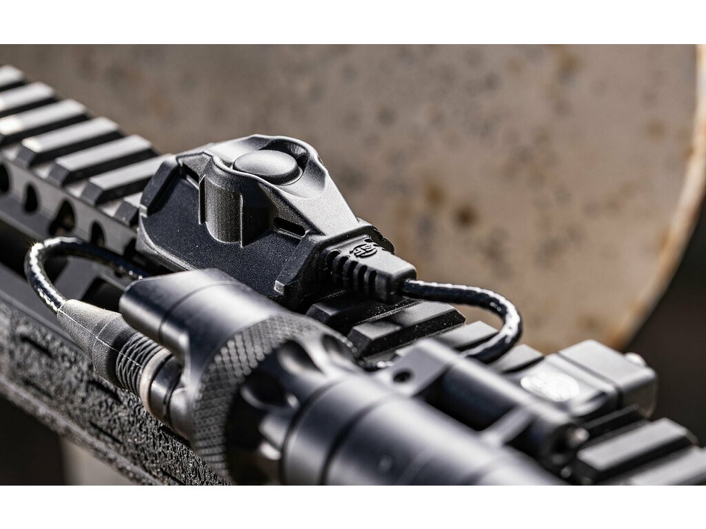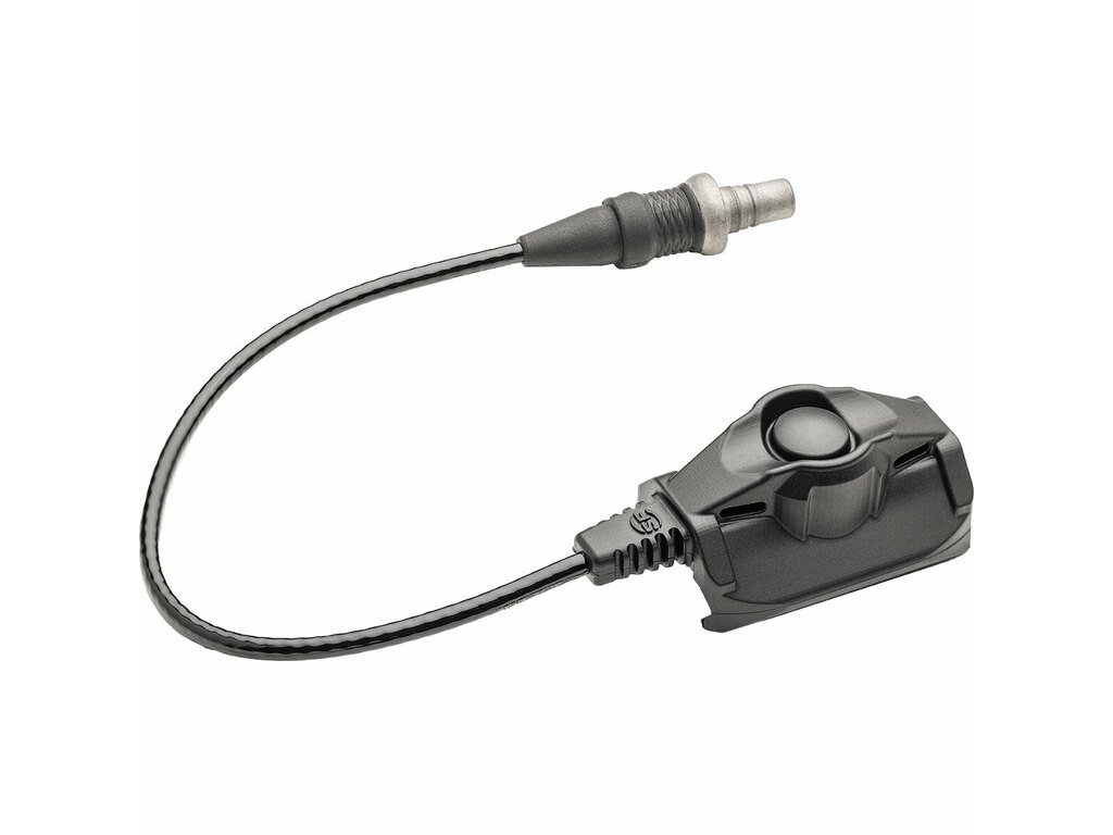 Spínač je vyroben z vysoce odolného polymeru a připevňuje se pomocí adaptéru kompatibilního s Picatinny rail systémem. Ovládání probíhá ve dvou režimech – lehkým stiskem se aktivuje momentální světlo, důraznějším stlačením dojde k trvalému rozsvícení. Kabel je navržen pro flexibilní vedení a minimalizaci překážení v úchopu. Konstrukce je robustní, odolná vůči vlhkosti, nárazům i dlouhodobému používání v terénu.