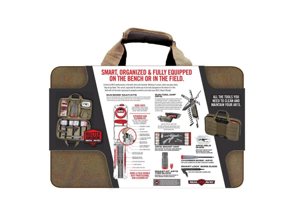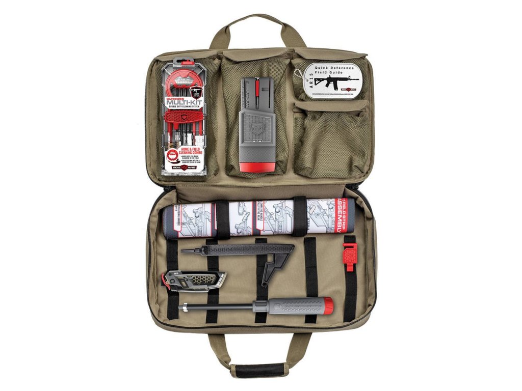 Tato taktická sada nabízí vše, co potřebujete pro rychlou údržbu i servis pušky AR-15. Obsahuje čistící šňůru Gun Boss pro efektivní čištění hlavně, držák loweru Smart-Fit Vise Block pro bezpečnou práci na zbrani, podložku Smart Mat s úložným prostorem pro díly a nástroje, Chamber Boss tyč na komoru, Pivot Lock pro rychlé otevření zbraně, Smart Lock Bore Guide pro ochranu hlavně při čištění a špičkový multitool Gun Tool Amp. Síťovaná kapsa na suchý zip umožňuje organizaci dalších drobností. Součástí jsou i užitečné rady a tipy pro AR-15.
