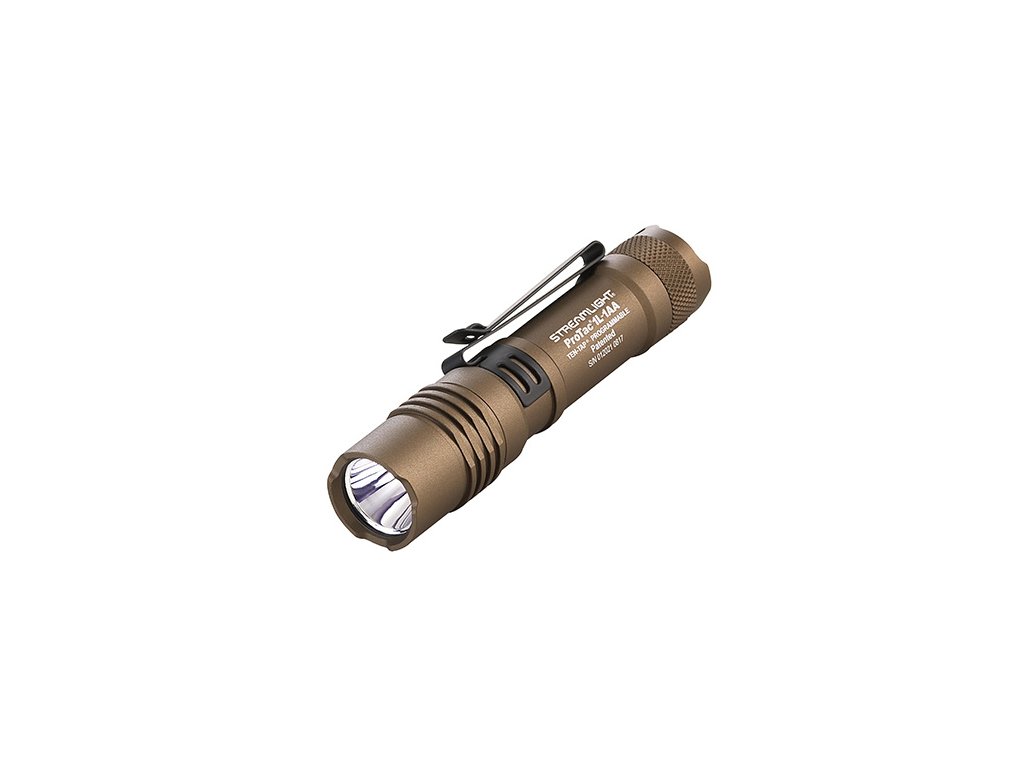 Taktická svítilna Streamlight ProTac 1L-1AA v barvě FDE nabízí špičkový výkon a flexibilitu napájení, protože je kompatibilní s dvěma typy baterií – jednorázovou lithiovou CR123A nebo alkalickou AA. Tři programovatelné režimy (vysoký výkon, stroboskop, nízký výkon) umožňují přizpůsobit svítilnu konkrétním požadavkům.