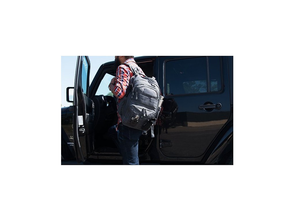 Tento batoh je vyroben z odolného 600D nylonu s zesíleným prošíváním, což mu zajišťuje dlouhou životnost i v náročných podmínkách. Disponuje hlavní přihrádkou s polstrovaným pouzdrem na notebook do velikosti 15", bočními kapsami na láhve s elastickým uchycením a snadno přístupnou zadní přihrádkou pro rychlé uložení a vyjmutí vybavení. MOLLE systém umožňuje připevnění dalšího příslušenství, zatímco velcro panel nabízí možnost umístění nášivek.
