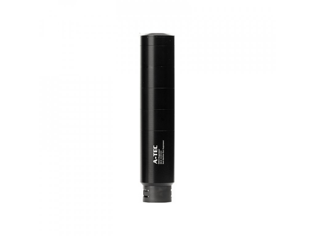 A-TEC SMG Tlumiče určeny pro samonabíjecí karabiny na pistolové náboje. Bude dodáván např. i pro karabiny EVO, Stribog, Heckler Koch, PCC atd. Modulový tlumič se všemi výhodami, jako snažší a pohodlnější čištění a údržba, možnost odebrání modulu pro kompaktnější rozměry. POZOR u klonů MP5 z Pakistánu, je velký nános laku na hlavni, který znemožňuje správné uzamčení tlumiče na Tri-Lug!! je třeba tento lak nejprve odstranit!