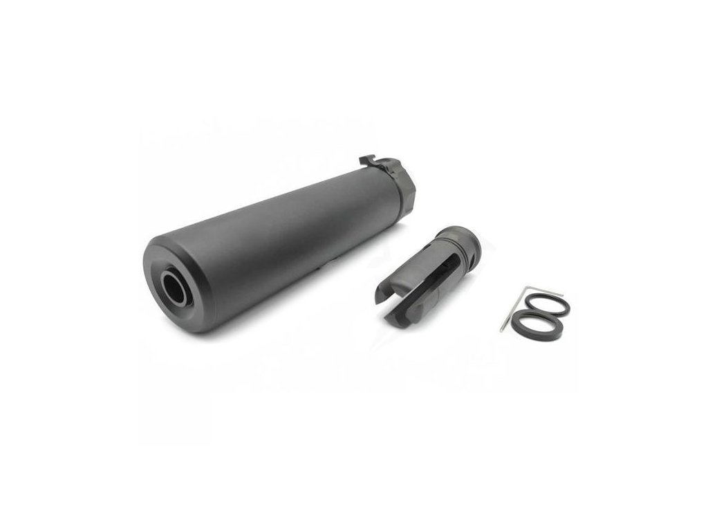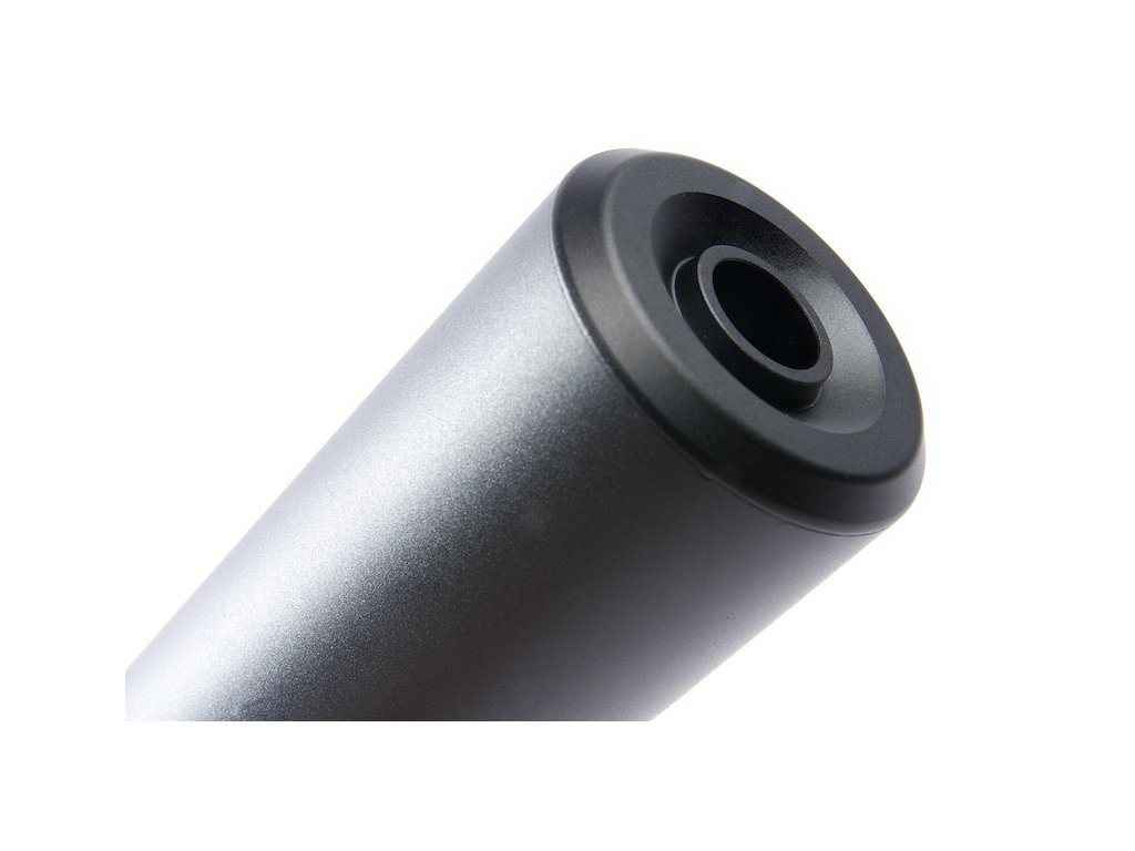 Jde o airsoftovou repliku, která netlumí hluk výstřelu jako reálný model, ale v kombinaci s molitanovými vložkami(nejsou součástí balení) lze u plynových a manuálních replik docílit částečného snížení hlučnosti. Tlumič je ideální pro military simulace, taktický trénink nebo estetický tuning repliky.