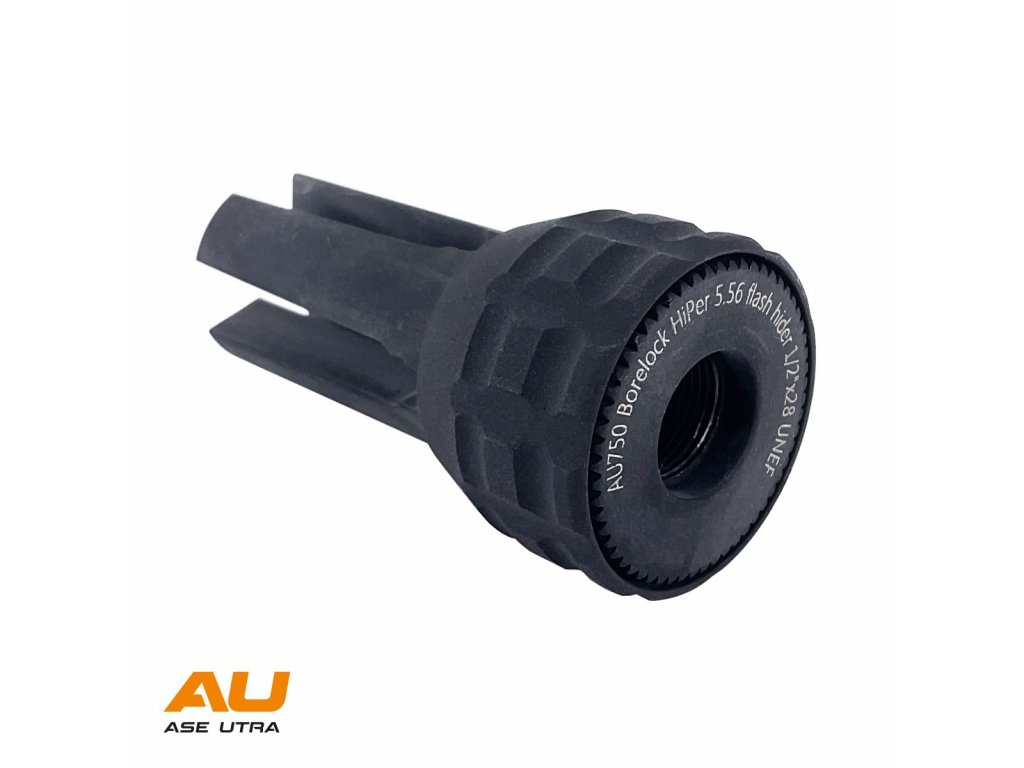 Tlumič výšlehu BoreLock Hiper 5,56 je navržen pro ráže .223 Rem / 5,56×45 NATO a je vybaven vnitřním závitem 1/2"x28 UNEF. Jeho ploché zakončení umožňuje bezpečnou a přesnou instalaci na ústí hlavně. Konstrukce využívá technologii BoreLock, která zajišťuje kompatibilitu s tlumiči řady DUAL (standardní verze). Tento model výrazně snižuje viditelnost záblesku při výstřelu a zároveň slouží jako montážní adaptér pro rychloupínací tlumiče ASE UTRA.