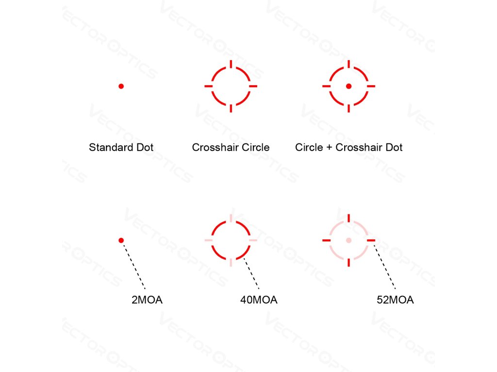 ✅ Multi Reticle systém – 2 MOA tečka, 40 MOA kruh, kruh s tečkou
