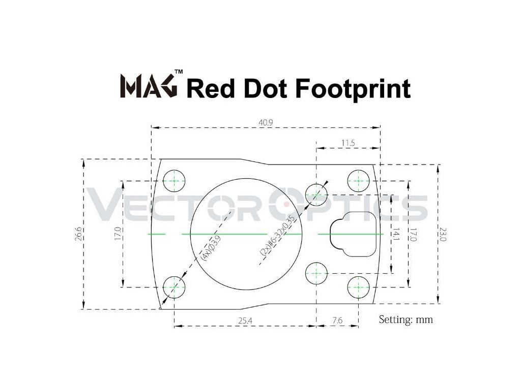 Kolimátor má otevřený design a optické okénko o velikosti 17 x 24 mm, které zajišťuje perfektní přehled o cíli a okolí. Boční přístup k baterii (CR1632) usnadňuje výměnu bez nutnosti demontáže kolimátoru. Automatické vypnutí po dvou minutách nečinnosti zajišťuje úsporu energie, přičemž baterie poskytuje výdrž až 30 000 hodin.