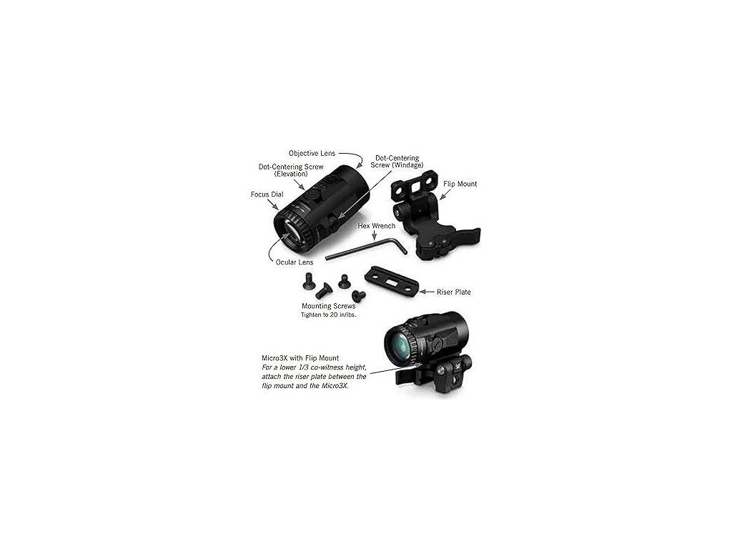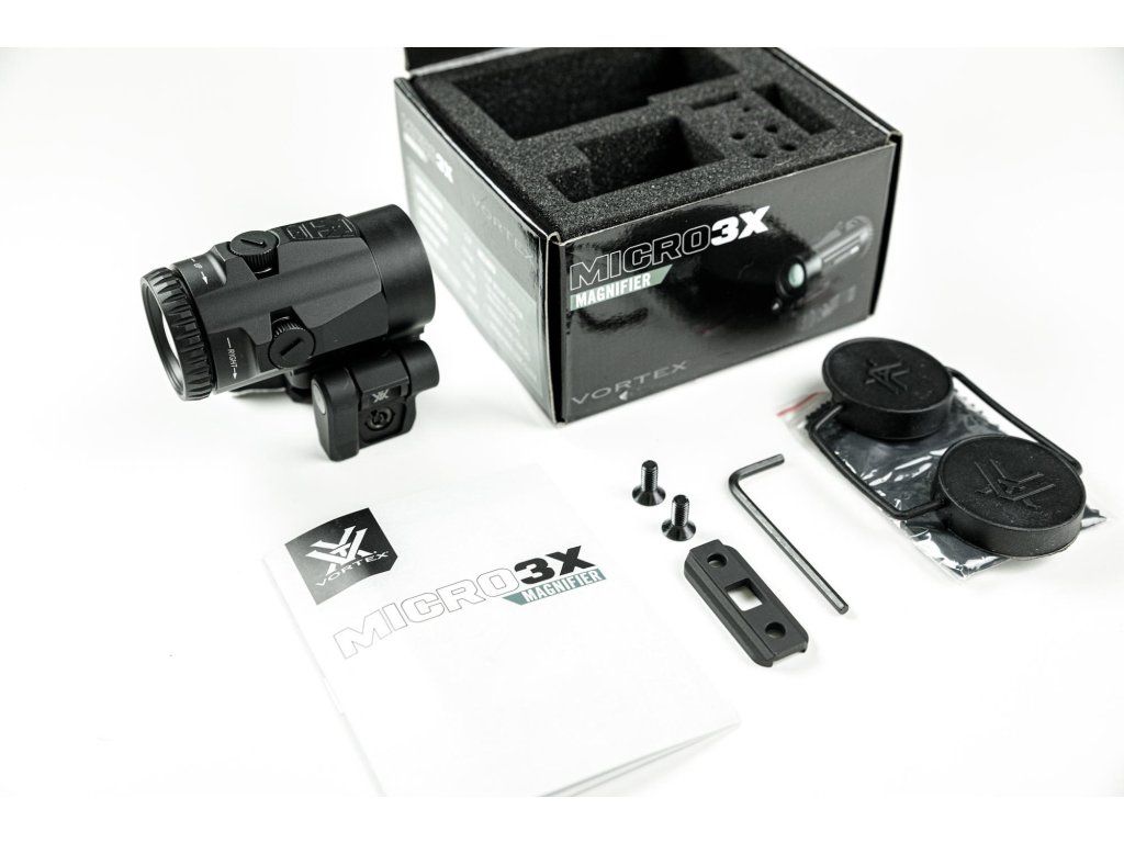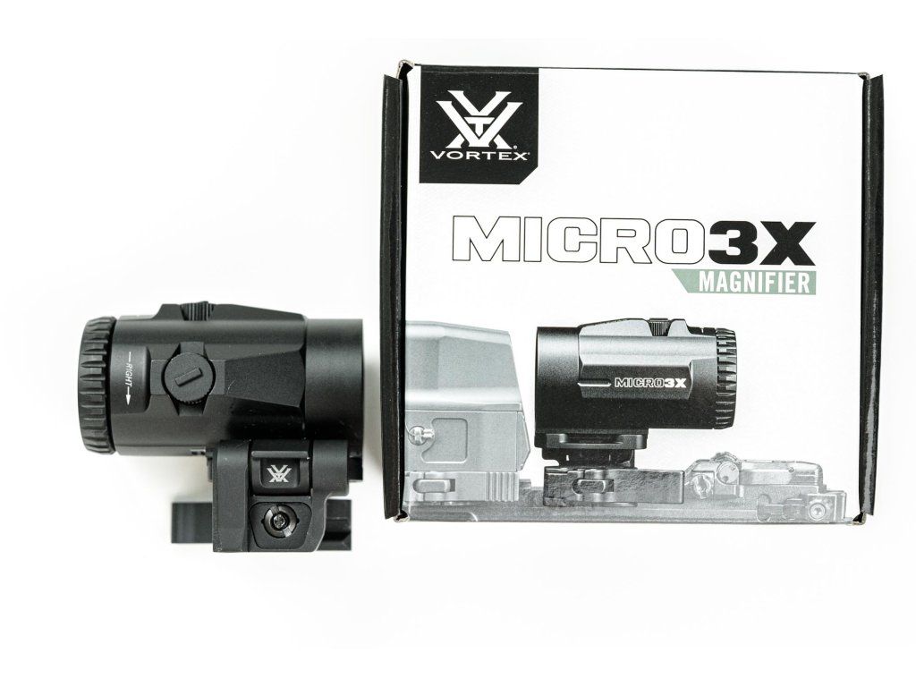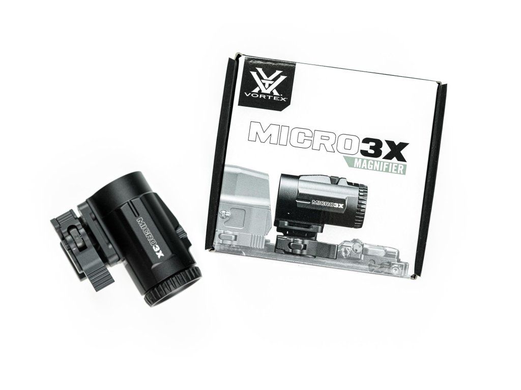 Vortex Micro 3x Magnifier je navržen pro použití s kolimátory typu red dot i holografickými zaměřovači. Modul se montuje za kolimátor a umožňuje okamžité přepnutí mezi zvětšením 1× a 3× jednoduchým vyklopením do strany.