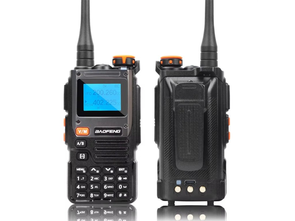 Baofeng UV-K61 je kompaktní Tri-Band vysílačka schopná provozu v pásmech VHF (136–174 MHz, 220–260 MHz)a UHF (400–480 MHz) s příjmem v AIR pásmu (108–136 MHz, AM modulace). Díky tomu je vhodná nejen pro běžné uživatele, ale i pro letecké nadšence a profesionální komunikaci. Vysílačka nabízí výkon 1W (LOW) nebo 4–5W (HIGH) a paměť až 999 kanálů, z nichž část je z výroby naprogramována (16 PMR, 9 sdílených UHF a 5 VHF kanálů).