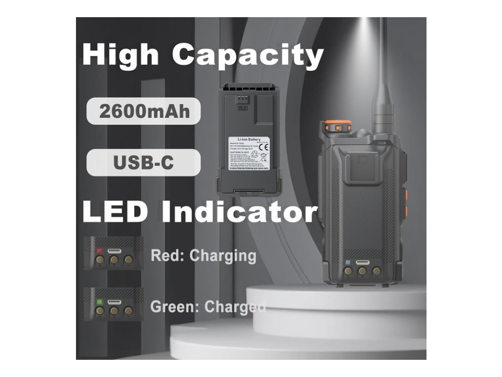 Stanice obsahuje funkce jako VOX, Scrambler, Roger beep, časovač, zámek klávesnice, heslo pro zapnutí a další užitečné nástroje. USB-C nabíjení umožňuje pohodlné dobíjení z běžných nabíječek či powerbank. Výkonný reproduktor zaručuje hlasitý a čistý zvuk, zatímco ergonomické tělo poskytuje vysokou odolnost a snadné ovládání i v rukavicích.