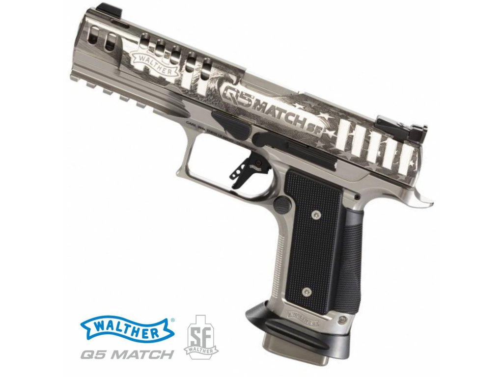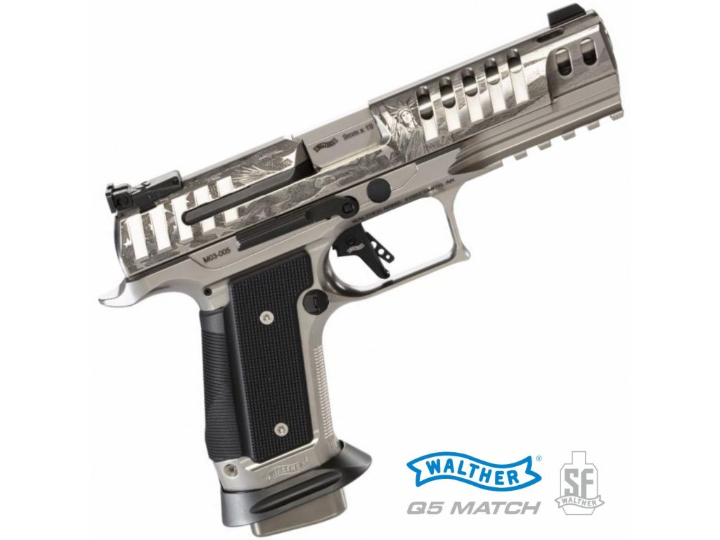 Walther Q5 Match SF Patriot je model určený primárně pro USA, o čemž svědčí rytina vytvořená italským rytcem Giovanellim s motivy lysohlavého orla, Sochy svobody a hvězd a pruhů. Povrch zbraně je ošetřen známou Teniferací, což je sycení povrchu oceli dusíkem a uhlíkem ve speciální solné lázni. Materiál tak získá obrovskou povrchovou trvdost a odolnost proti korozi. V tomto případě je povrch závěru a rytin nadále leštěn do vysokého lesku.