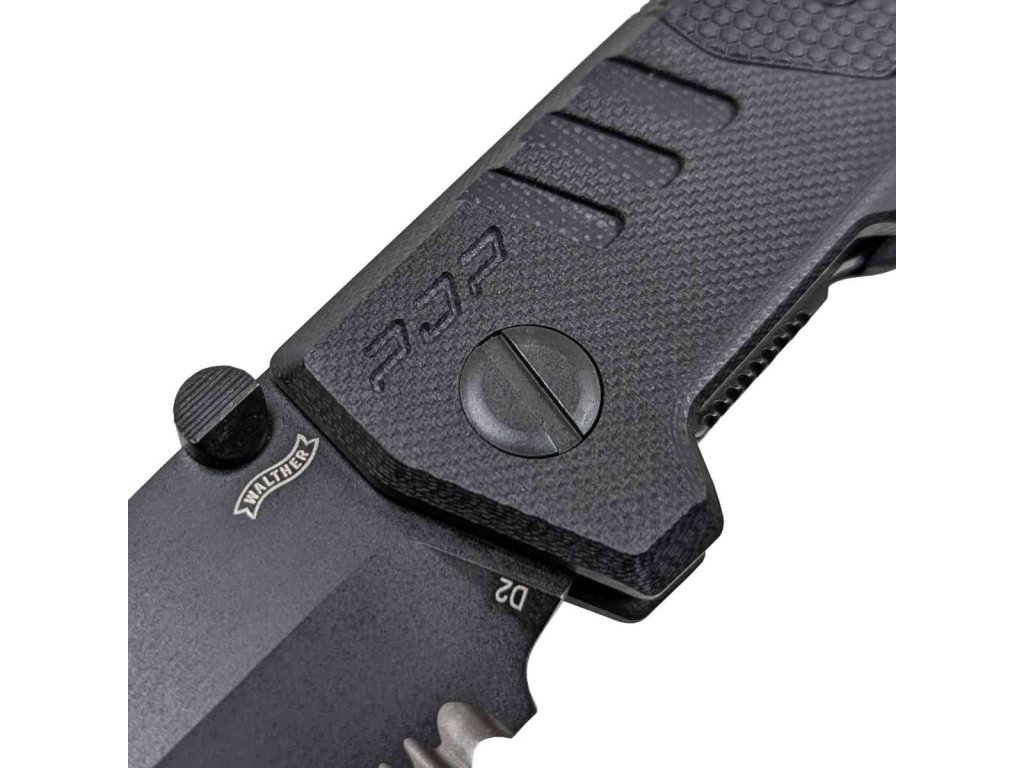 Konstrukce nože staví na materiálu D2, který díky vysoké tvrdosti zaručuje dlouhotrvající ostrost čepele o délce 92 mm a tloušťce 3,6 mm. Čepel je potažena černým povlakem pro zvýšení odolnosti proti korozi. Rukojeť z G10 a FRN poskytuje pevný a jistý úchop, doplněný vroubkováním inspirovaným designem pistole Walther PDP. Oboustranný opaskový klip je odnímatelný a umožňuje nošení jak na pravé, tak levé straně. Linerlock pojistka z nerezové oceli zajišťuje spolehlivost a bezpečnost během používání.