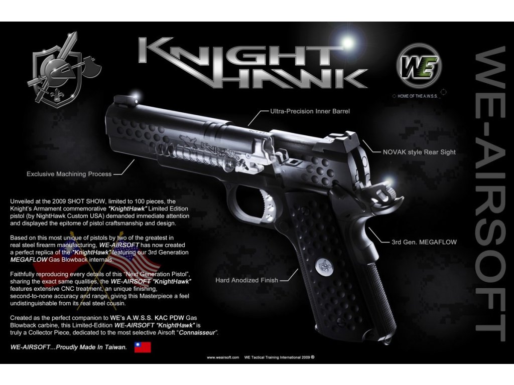 WE GBB plynová pistole KAC Knight Hawk - Černá