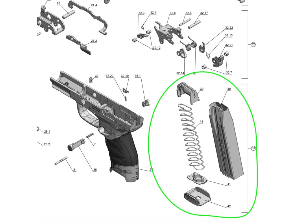 ✔ Vysoce kvalitní pružiny – zajišťují spolehlivé podávání nábojů