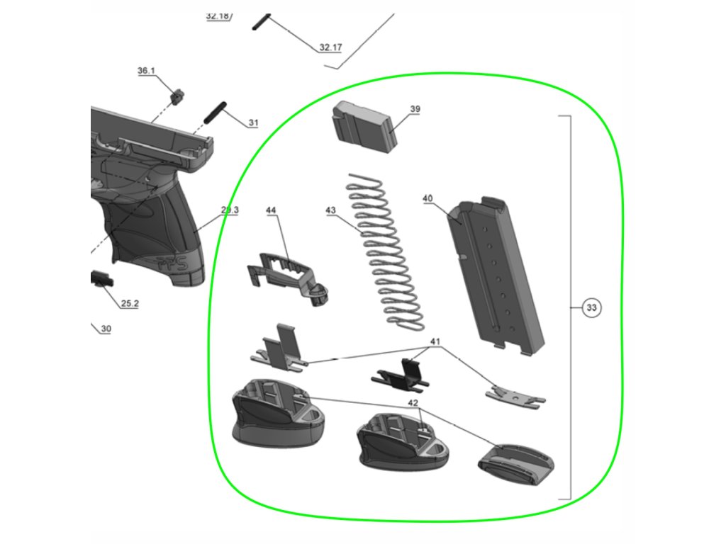 ✔ Vysoce kvalitní pružiny pro bezproblémové podávání nábojů