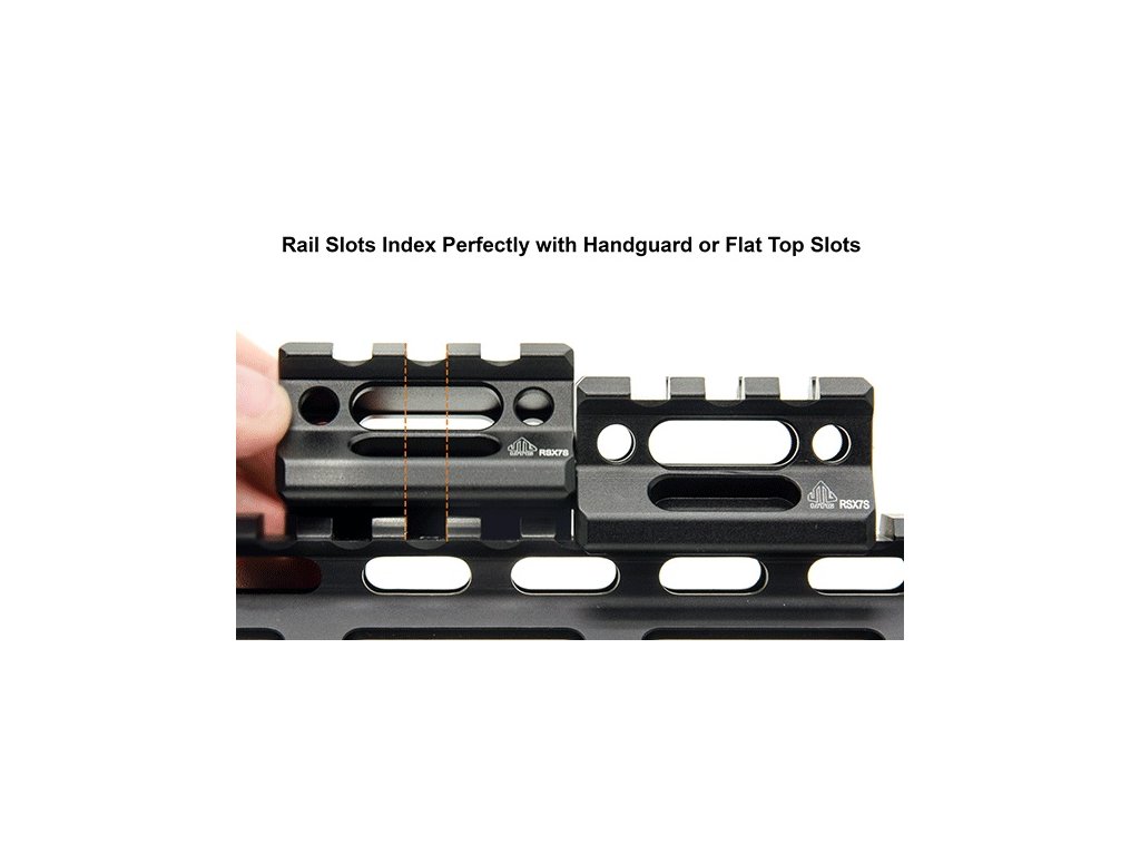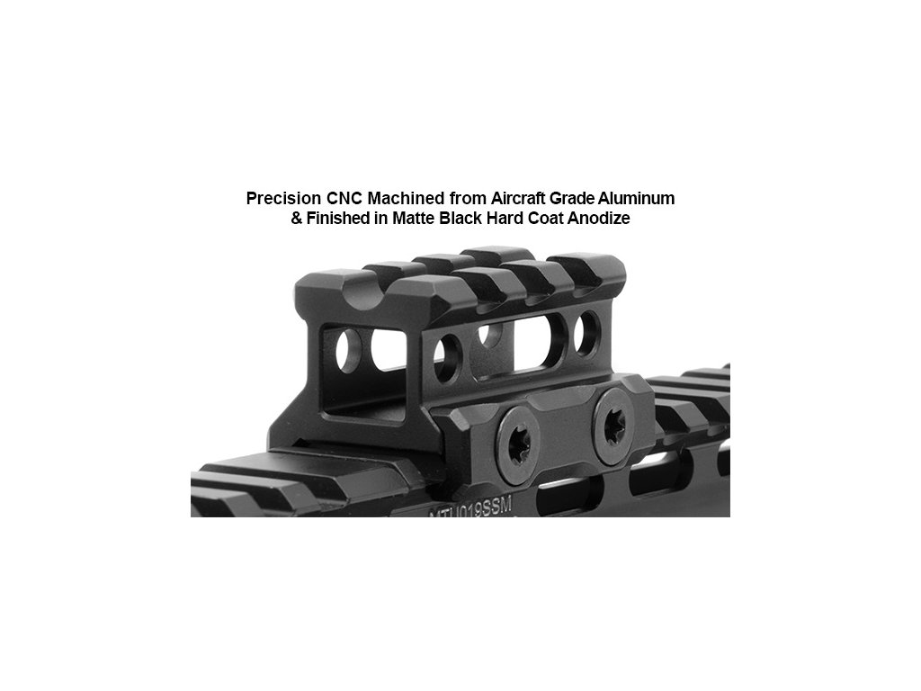 Základna je vyrobena z leteckého hliníku na CNC strojích, což zaručuje maximální přesnost a pevnost. Anodizovaná povrchová úprava chrání montáž proti korozi a opotřebení. Výška zvýšení činí 0,75" (19 mm), což zajišťuje ideální polohu zaměřovacího systému pro rychlé zacílení. Délka 3,99 mm byla patrně uvedena chybně, reálná délka odpovídá 3 slotům, což je přibližně 38 mm (1,5"). Hmotnost pouhých 26,6 g minimalizuje zatížení zbraně.